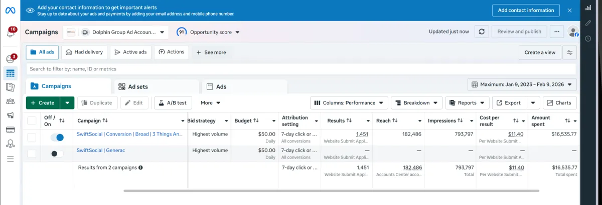 Average Cost Per Lead = $16.03
